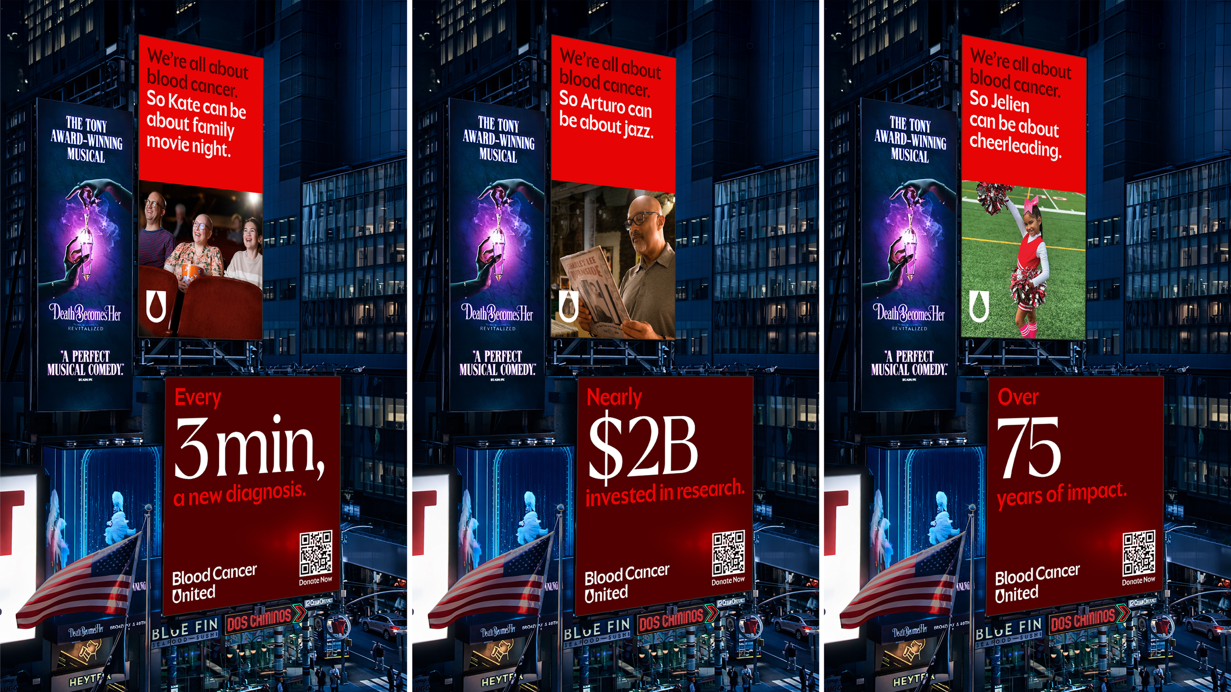 When the Leukemia & Lymphoma Society became Blood Cancer United, it marked an opportunity to redefine what the organization stands for. As the world’s leading organization for everyone affected by blood cancer, it has invested more than $2 billion in research since 1949 and helped drive 70% of FDA-approved blood cancer treatments in the past two decades. Yet beyond the numbers is a simple truth: a diagnosis can instantly reshape someone’s identity. Blood Cancer United exists to shoulder the research, support, and advocacy so those affected can remain focused on living their lives. We launched the new name with a campaign that put life back in focus, showing people fully immersed in the moments that matter while the organization carries the weight behind the scenes. The result was a hopeful, human introduction to a bold new chapter.